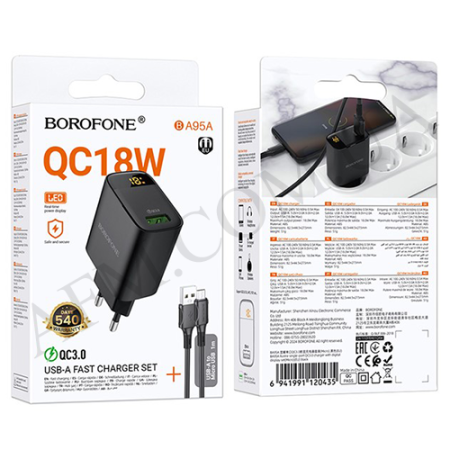 Аксесуари до мобільних телефонів Зарядні пристрої Borofone СЗУ блок Borofone BA95A QC3.0 + кабель Micro + дисплей чорний Код: 89812425 115.13 грн. Доставка ×