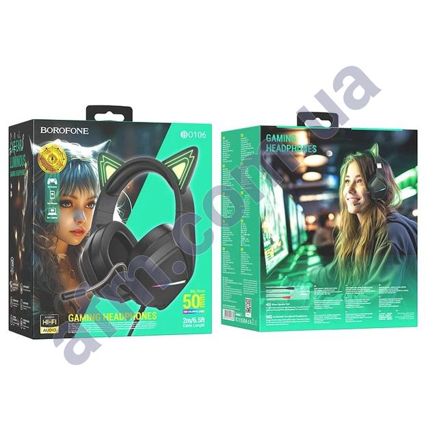 Аксесуари до мобільних телефонів Навушники Borofone Навушники Borofone BO106 игровые Cute Cat зелена підсвічування чорні Код: 89814435 405.41 грн. Доставка ×