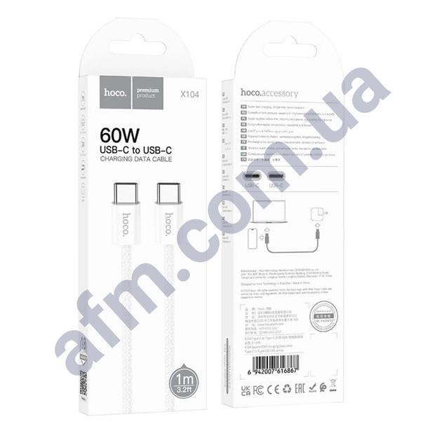 Аксесуари до мобільних телефонів Кабелі USB Hoco Type-C USB кабель Hoco X104 Type-C на Type-C 60W (1000mm) білий Код: 89814750 75.37 грн. Доставка ×