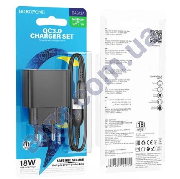 Аксесуари до мобільних телефонів Зарядні пристрої Borofone СЗУ блок Borofone BAS12A (1USB/ 3A) + кабель Micro чорний Код: 89815286 106.59 грн. Доставка ×