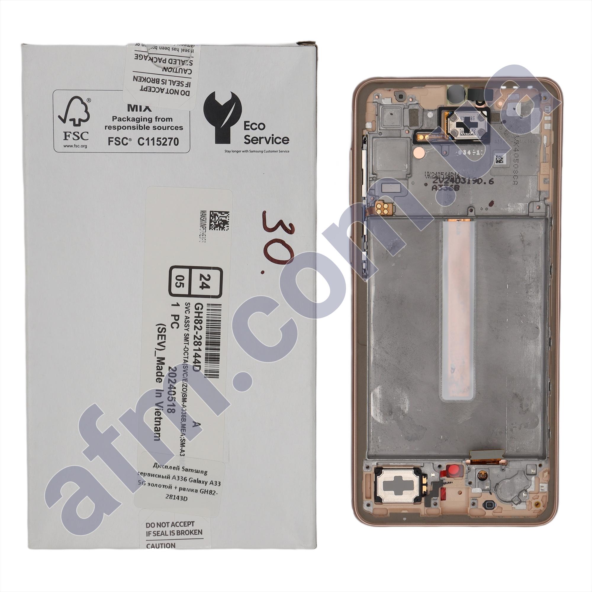 Дисплей Samsung сервисный A336 Galaxy A33 5G золотой + рамка GH82-28143D Код: 89796422 3548.59 грн. Доставка ×